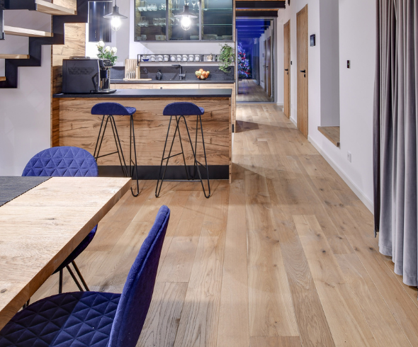 Na podłodze zagościł nie byle kto, a parkiet Chapel Parket w kolorze Elsey.
